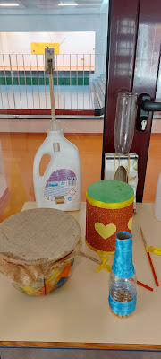 Também as famílias foram convidadas a participar, tendo criado belos instrumentos musicais em materiais recicláveis, que estão expostos no átrio de entrada da escola.